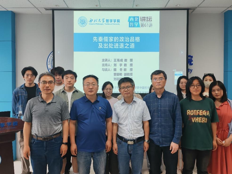 5月16日下午,西北农林科技大学马克思主义学院教授王海成做客“西北哲学讲坛”第61讲,在长安校区西学楼北304437必赢会员中心会议室作了题为“先秦儒家的政治品格及出路进退之道”的专题讲座。本次讲座由刘宇教授主持,魏冬教授、曹振明副教授、刘宗镐副教授与谈,437必赢会员中心师生30余人参加。